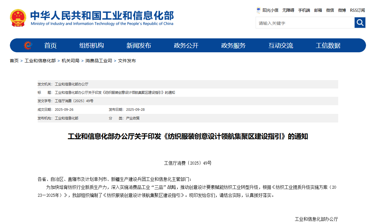 工业和信息化部办公厅 2025年9月26日 工信厅消费〔2025〕49号